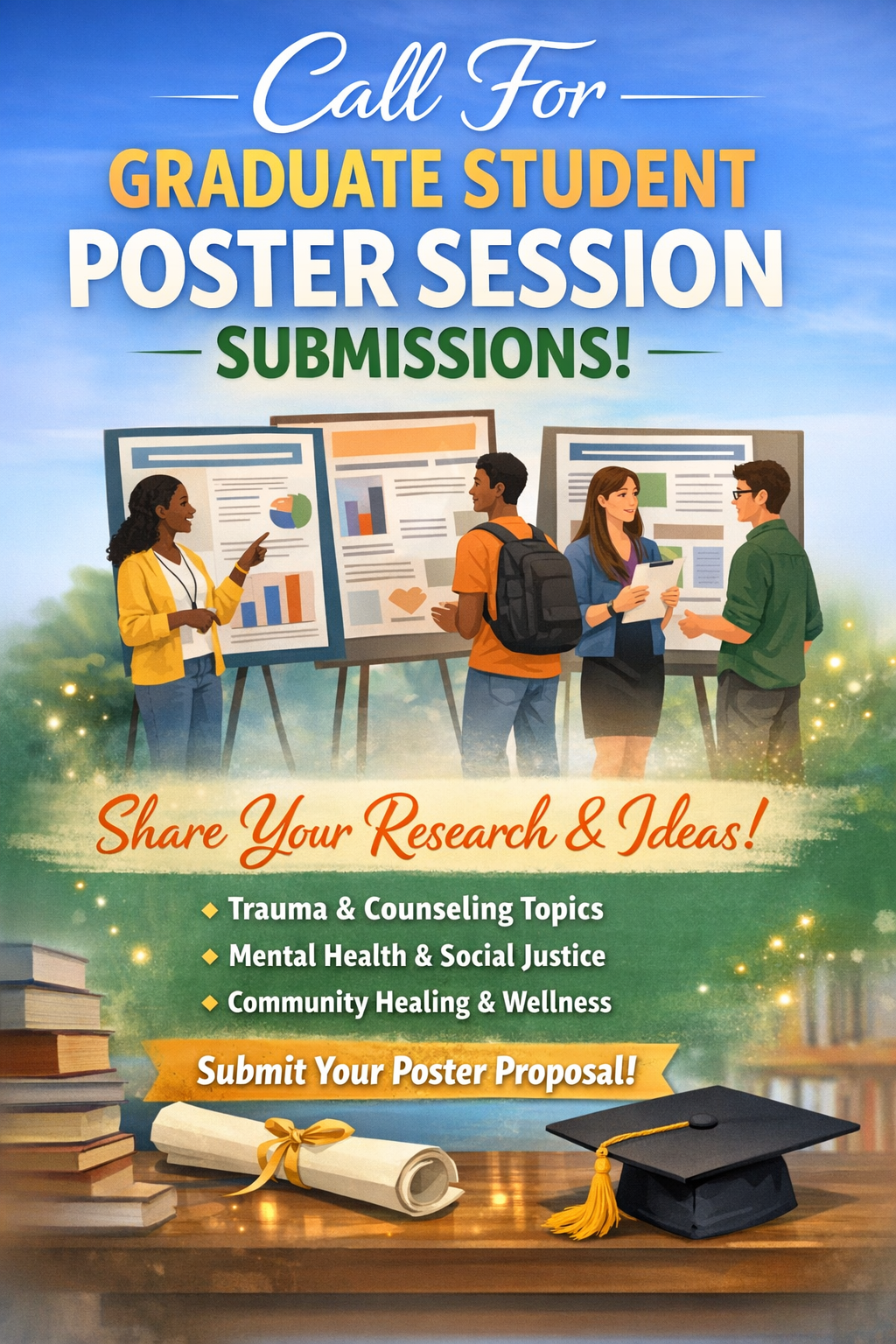 Master’s and doctoral counseling students are encouraged to submit research- or practice-based posters related to trauma, violence prevention, survivor-centered care, community healing, or social justice in counseling.